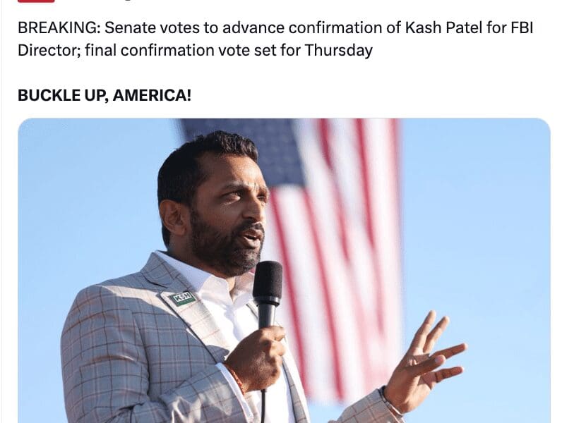 The Senate just voted to advance Kash Patel’s confirmation for FBI Director, and the final vote is set for Thursday. That means we are this close to having an actual patriot in charge of the country’s most corrupt three-letter agency. Can you hear the D.C. swamp creatures screaming? Because I sure can! For years, the […]